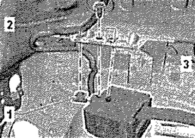 Отсоединить жгут проводов, отсоединить разъём «1». Вывернуть винт «2». Снять инерционную катушку «3».